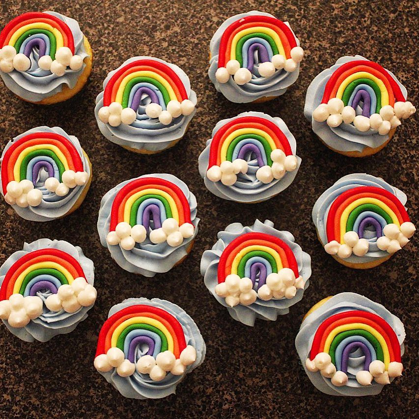 Experience a burst of color with our Rainbow Whirls Cupcakes, each topped with vibrant, handcrafted