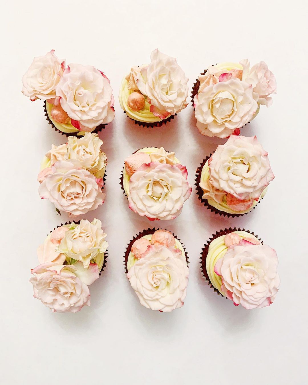 These delightful cupcakes are topped with beautifully crafted edible flowers that add a touch of