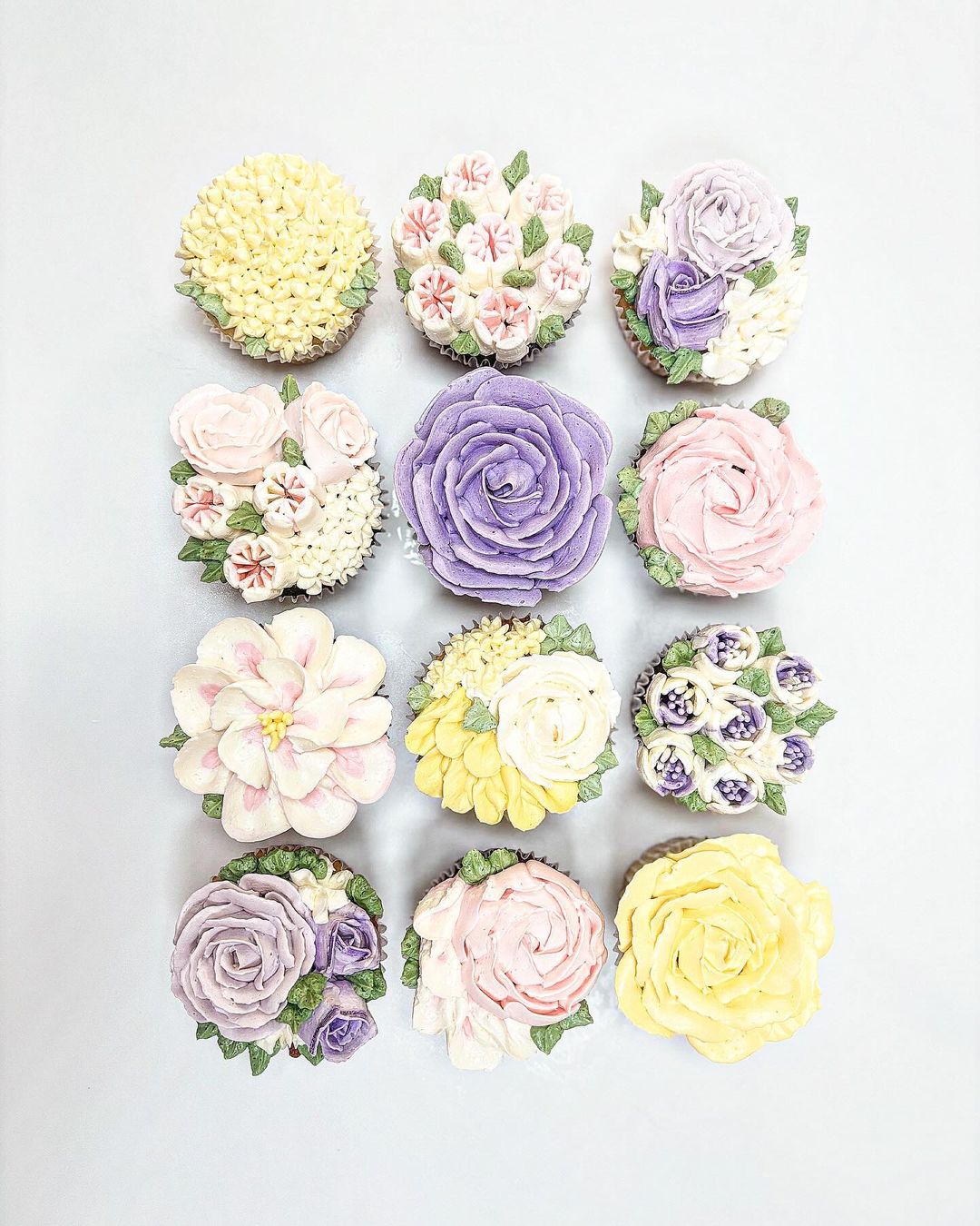 any occasion. Each cupcake is beautifully adorned with intricate buttercream designs, showcasing a