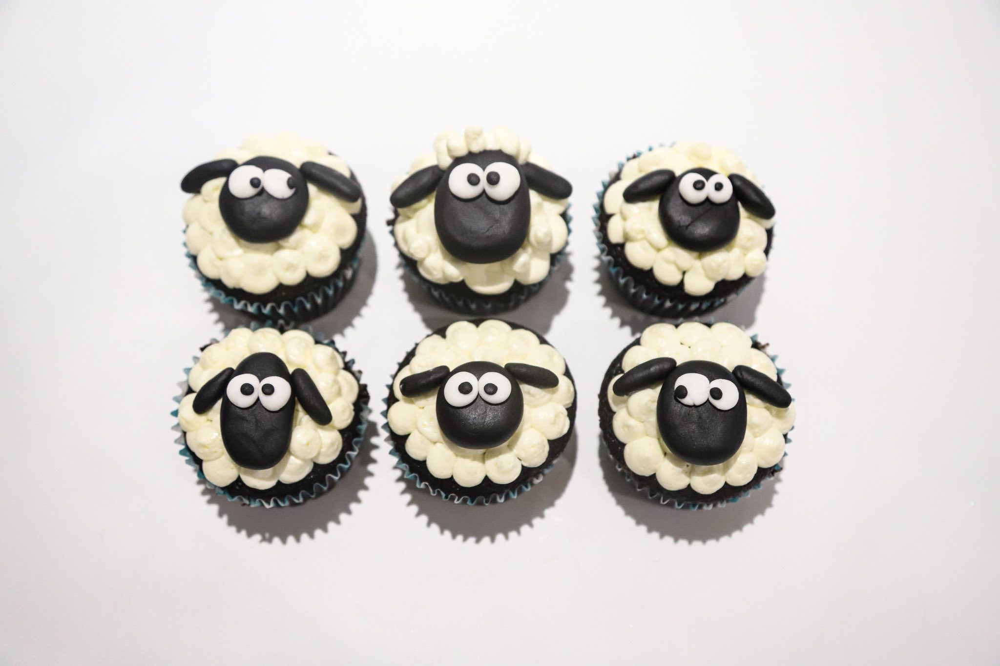 topped with a generous swirl of vanilla buttercream "wool" and a sweet little sheep face. Perfect