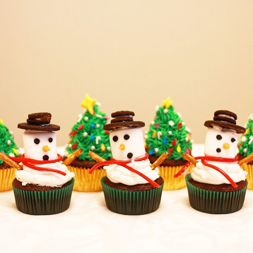 frosting and playful marshmallow snowmen. Each delightful treat is adorned with pretzel arms, candy